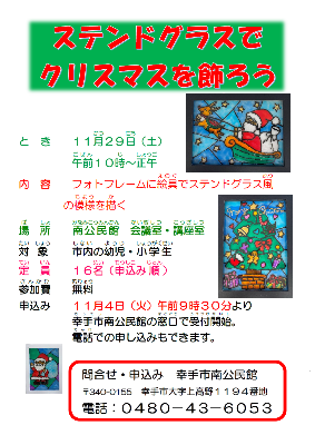 ステンドグラスでクリスマスを飾ろう(南公民館)
