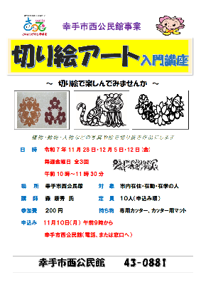 11月10日(月曜日)午前9時から、西公民館 電話または窓口へ
