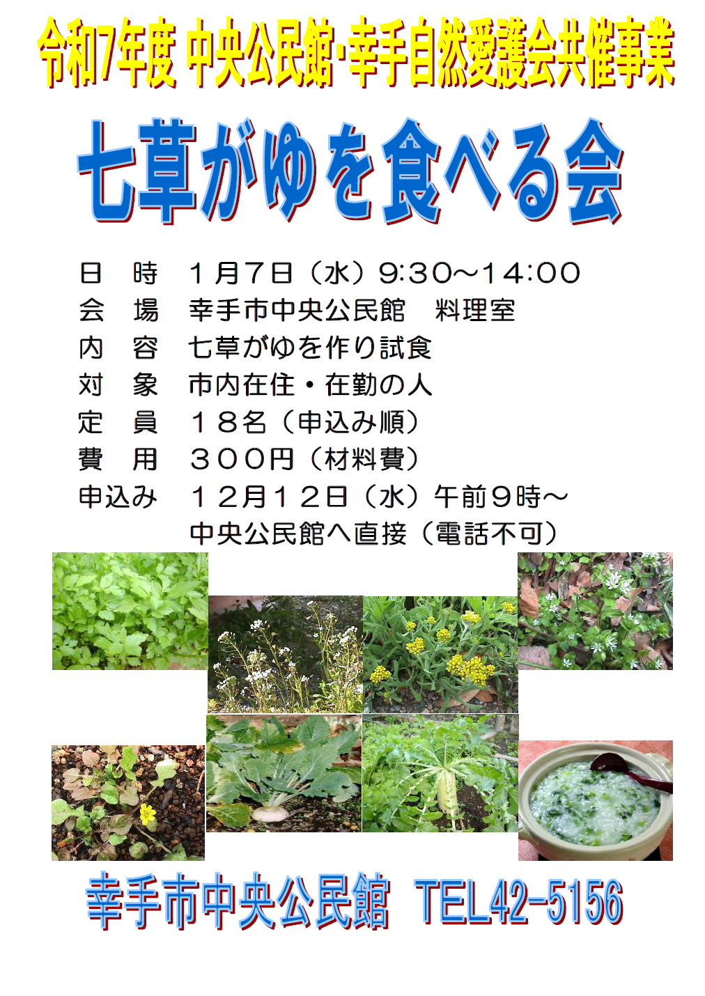 七草がゆを食べる会(中央公民館・幸手自然愛護会共済事業)