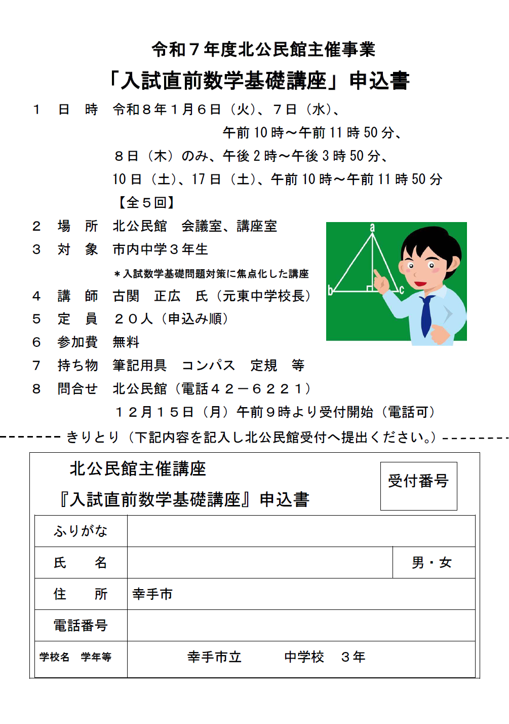 入試直前数学基礎講座(北公民館)