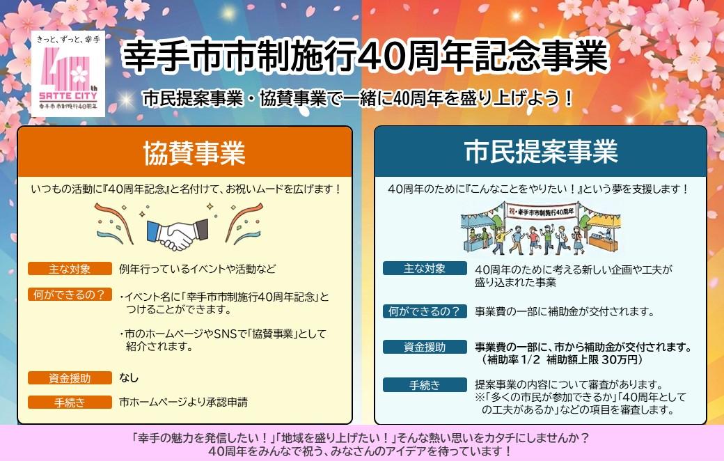 そこで、市制施行40周年をPRしていただける団体や企業が主催する事業を募集します!