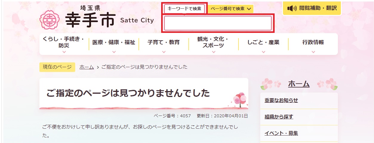 なお、ページ移動に関しましては「サイト内検索(Google検索)」に、情報が紐づけされるのに数日かかることもあります。