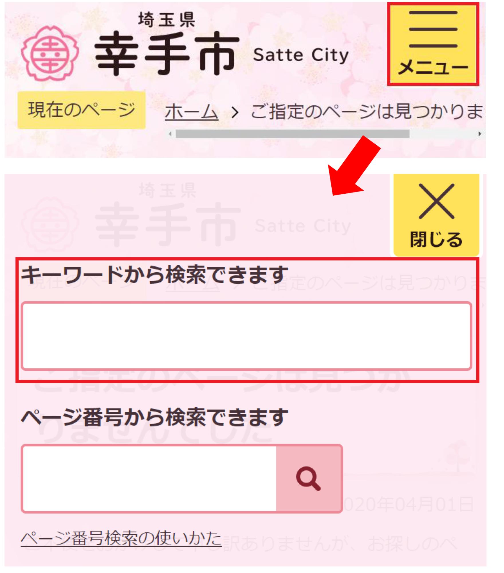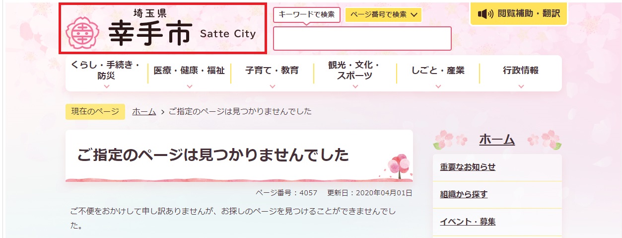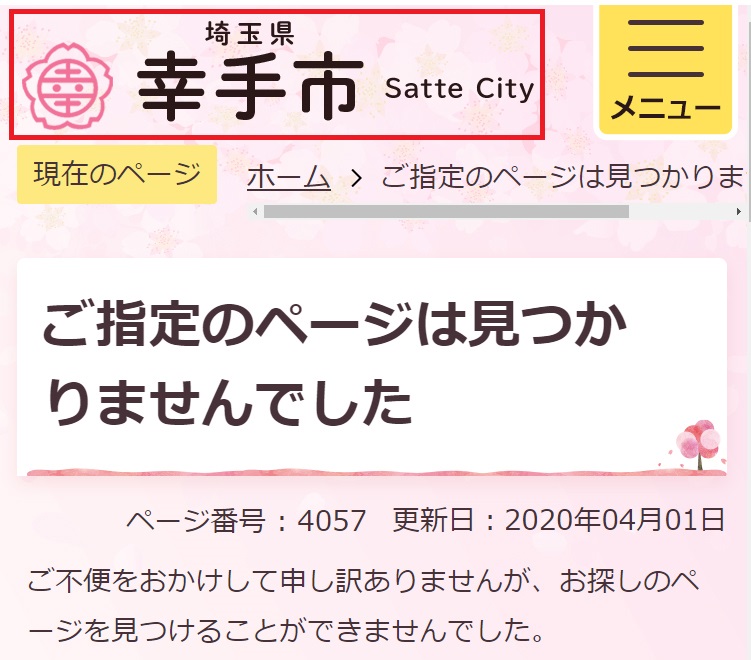 左上の幸手市のアイコンをクリックし、幸手市ホームページのトップページから探す。