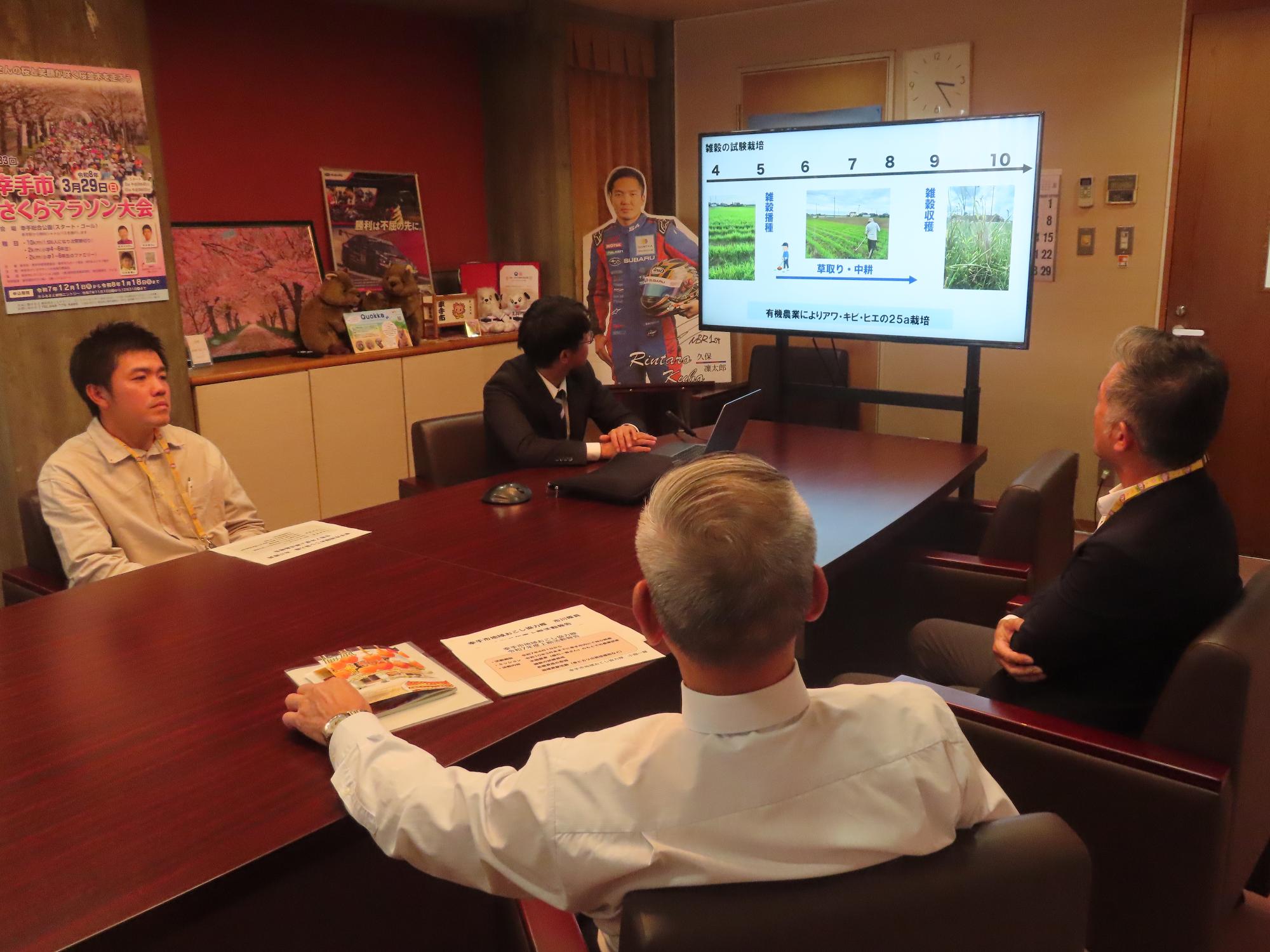 幸手市地域おこし協力隊の2名が、11月19日(水曜日)に、令和7年度上期の活動実績などについて、市長へ報告しました。
