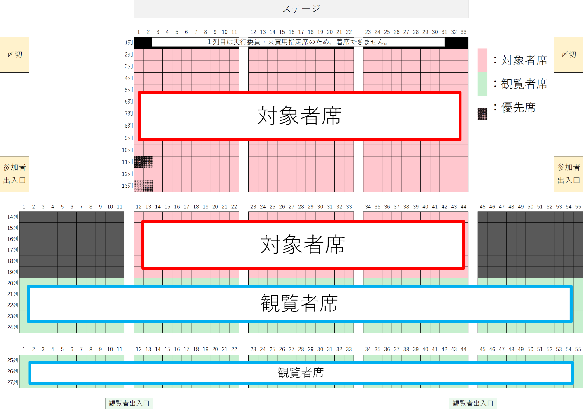 「対象者」とその他の「観覧者」で、座席を分けています。